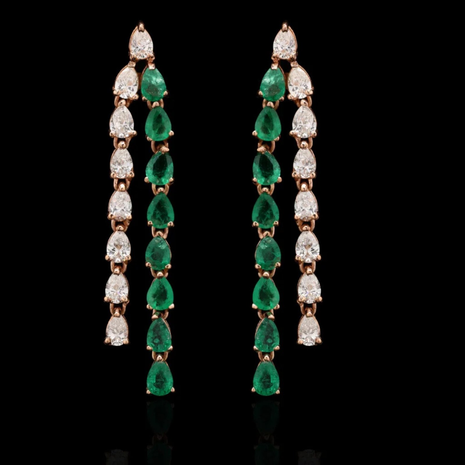 Elegance meets enchantment in these Emerald and Diamond Dangling Earrings. Featuring richly hued emeralds paired with sparkling white diamonds, each stone is carefully set to create a graceful cascade of color and brilliance. The dynamic movement and vivid contrast between the lush green and radiant sparkle make these earrings a show-stopping accessory—perfect for special occasions, festive evenings, or adding a regal touch to your look. A timeless expression of luxury and grace.