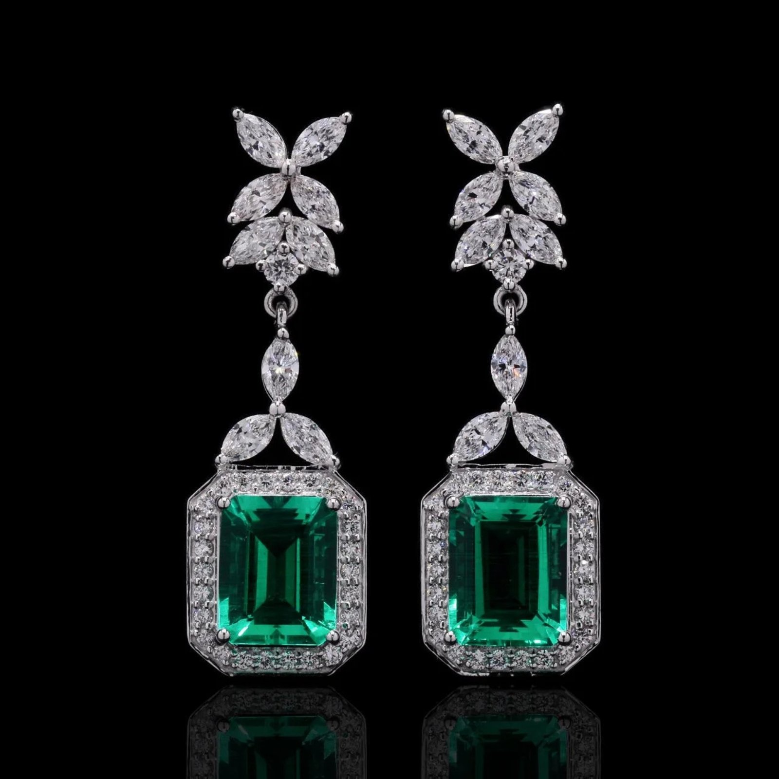 These exquisite danglings showcase the finest Colombian emeralds, known for their vivid green hue and exceptional quality, paired with a dazzling arrangement of fancy-cut diamonds. Whether shaped in marquise, pear, baguette, or cushion cuts, each diamond adds a unique sparkle and architectural grace to the design. Suspended from a delicate yet striking framework in white or yellow gold, the earrings dance with every movement, making them ideal for special occasions, grand celebrations, or collectors of fine jewelry. A true blend of elegance and rarity, these earrings are a statement of refined luxury.